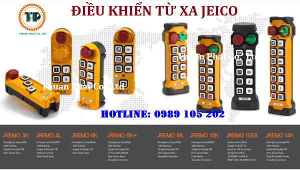 Công ty Thuận Phát phân phối tất cả các quy cách của điều khiển cầu trục JEICO, sản phẩm mới 100%, CO/CQ, bảo hành chính hãng 12 tháng, hàng luôn sẵn tại kho công ty, giao hàng nhanh chóng ngay khi nhận được đơn đặt hàng của Quý khách.