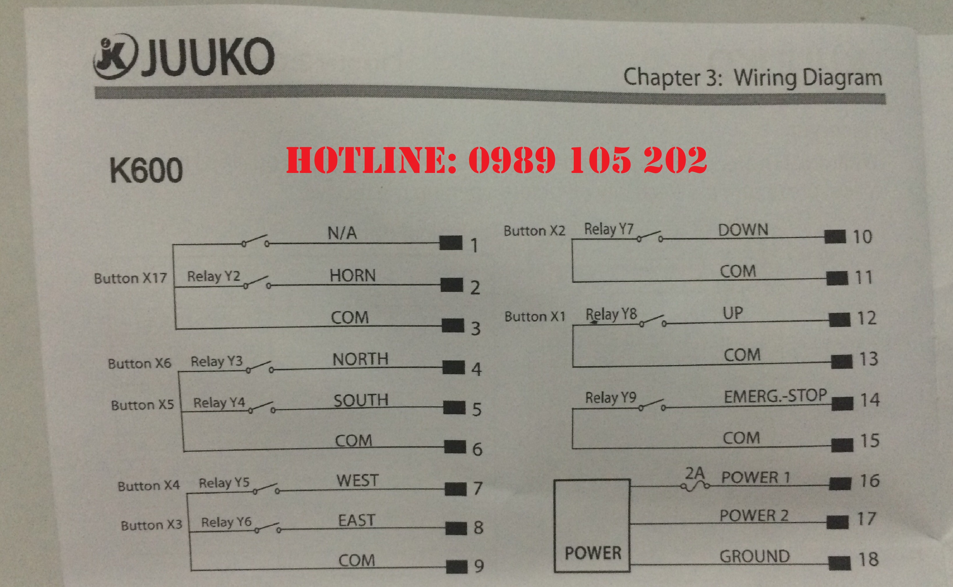 Sơ đồ lắp đặt điều khiển từ xa Juuko K600
