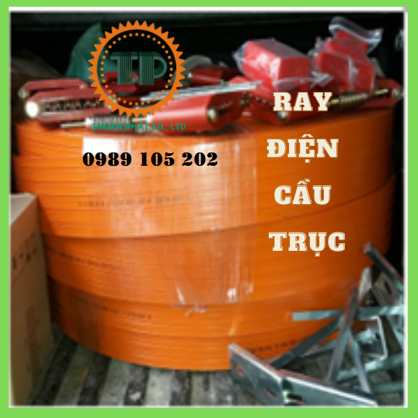 Ray điện an toàn 3P50A có các phụ kiện đi kèm khi lắp đặt như: chổi tiếp điện 3P50A, căng ray điện 3P, kẹp ray điện 3P, hộp nối ray điện 3P, để tạo thành một hệ thống điện thanh ray cho hệ cầu trục, cổng trục,…