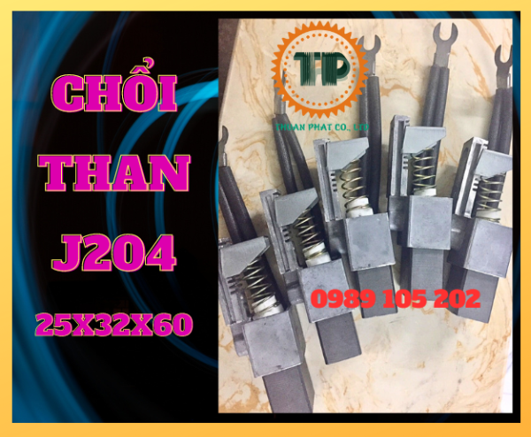 Công ty thiết bị công nghiệp Thuận Phát chuyên cung cấp chổi than J204 25x32x60mm để thay thế cho động cơ mô tơ dây quấn quay, sử dụng thay thế cho than lâu ngày bị mài mòn, hết than, giao hàng miễn phí toàn quốc.