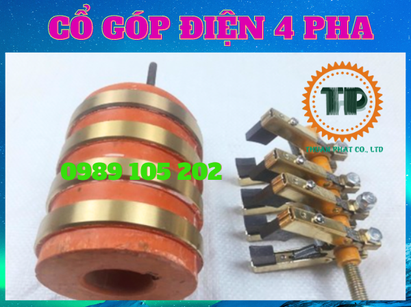 Bộ cổ góp điện 4 pha, cổ góp điện 4 vành trượt gồm có 4 vành đồng nguyên chất vòng quanh ở trục giữa, 4 cực ở trên đầu và bộ chổi than quétt tương ứng quanh vành đồng để lấy điện.