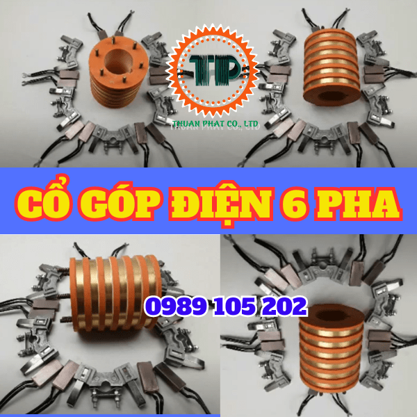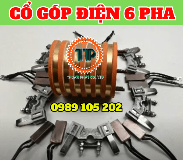 Cổ góp điện 6 pha hay còn gọi là cổ góp điện 6 vành trượt hay cổ góp chổi than 6 pha, hoạt động linh hoạt và chịu tải cao, nhưng yêu cầu bảo dưỡng định kỳ.