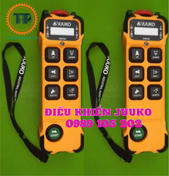 Điều khiển từ xa cầu trục Juuko K600 là bộ điều khiển có 6 nút điều khiển với các chức năng: lên, xuống, chạy qua, chạy lại, tới, lùi và tích hợp nút dừng khẩn cấp + nút khởi động, là dòng sản phẩm tiêu biểu của hãng JUUKO Đài Loan, có thiết kế gọn nhẹ thuận tiện với người sử dụng.
