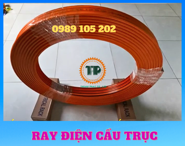 Ray điện cầu trục 3P-50A có 3 rãnh đồng dẫn điện và cấp điện nguồn cho bộ chổi quét chạy trượt theo để lấy điện cho các động cơ trên cầu trục.