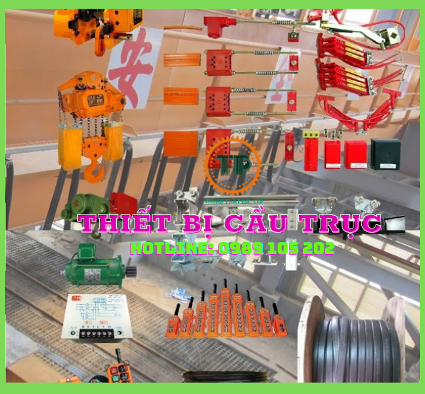 Thiết bị và phụ kiện cho cầu trục bao gồm: Palang điện cáp, palang xích điện, hệ thống điện thanh trượt, hệ thống điện kiểu sâu đo, motor cho dầm biên, tủ điện điều khiển, dây cáp điều khiển, tay bấm, điều khiển từ xa cho cầu trục và những thiết bị và phụ kiện khác cho cầu trục…, được nhập khẩu từ Hàn Quốc, Đài Loan, hàng luôn có sẵn tại kho công ty.